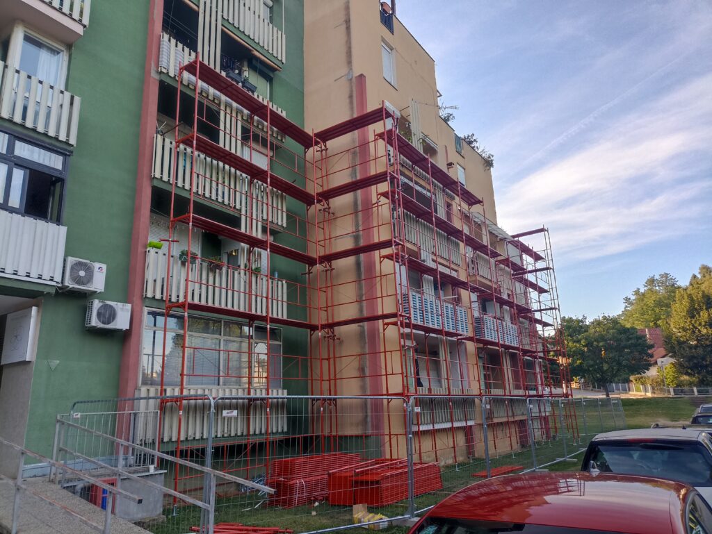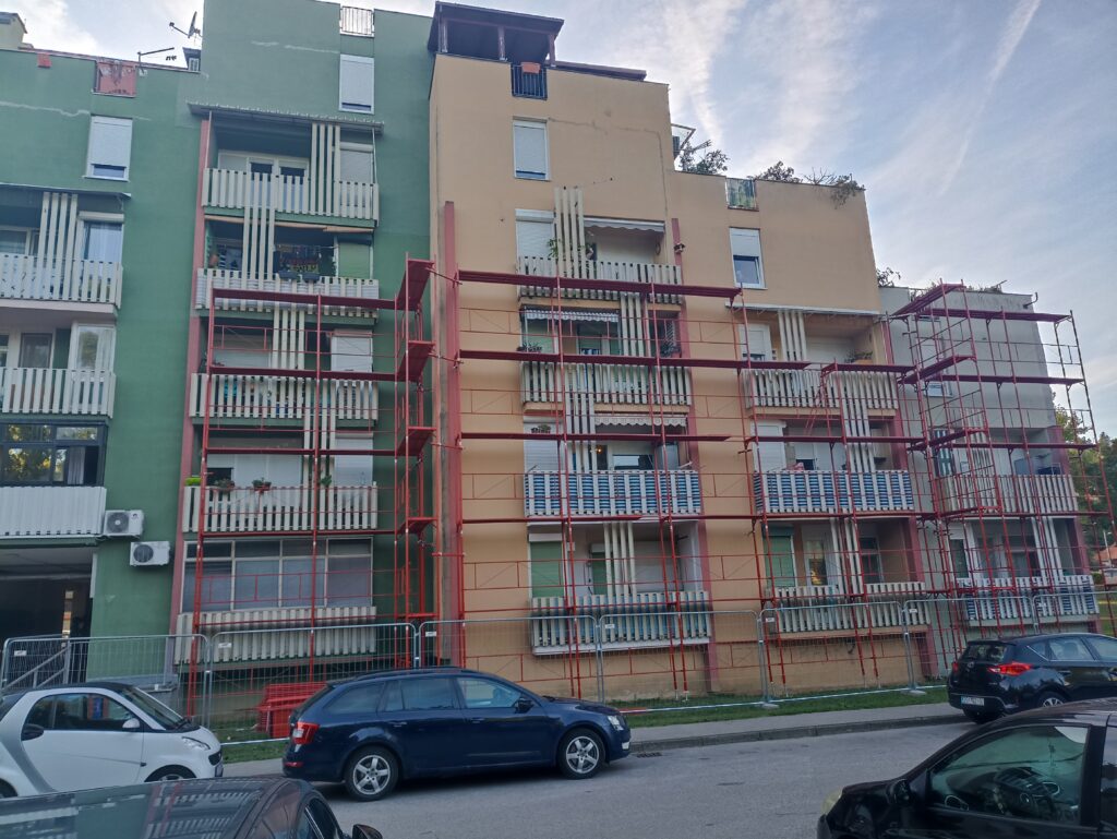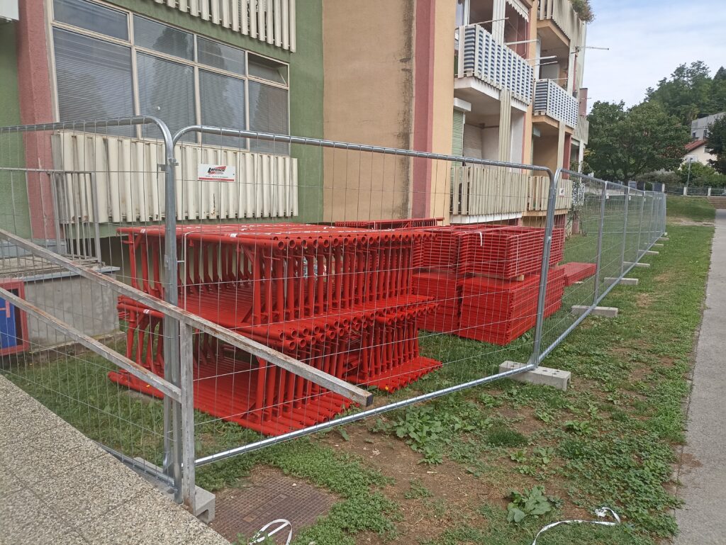 Od 20. kolovoza 2025., kada su prvi elementi stigli na gradilište, istočna strana zgrade je ograđena, a skela je počela nicati. Fotografije u prilogu govore više od riječi — za sve koji nisu na licu mjesta, donosimo vizualni pregled napretka.Ovo je ujedno i odgovor svima koji su se pitali s koje strane će radovi započeti: kreće se s istoka.